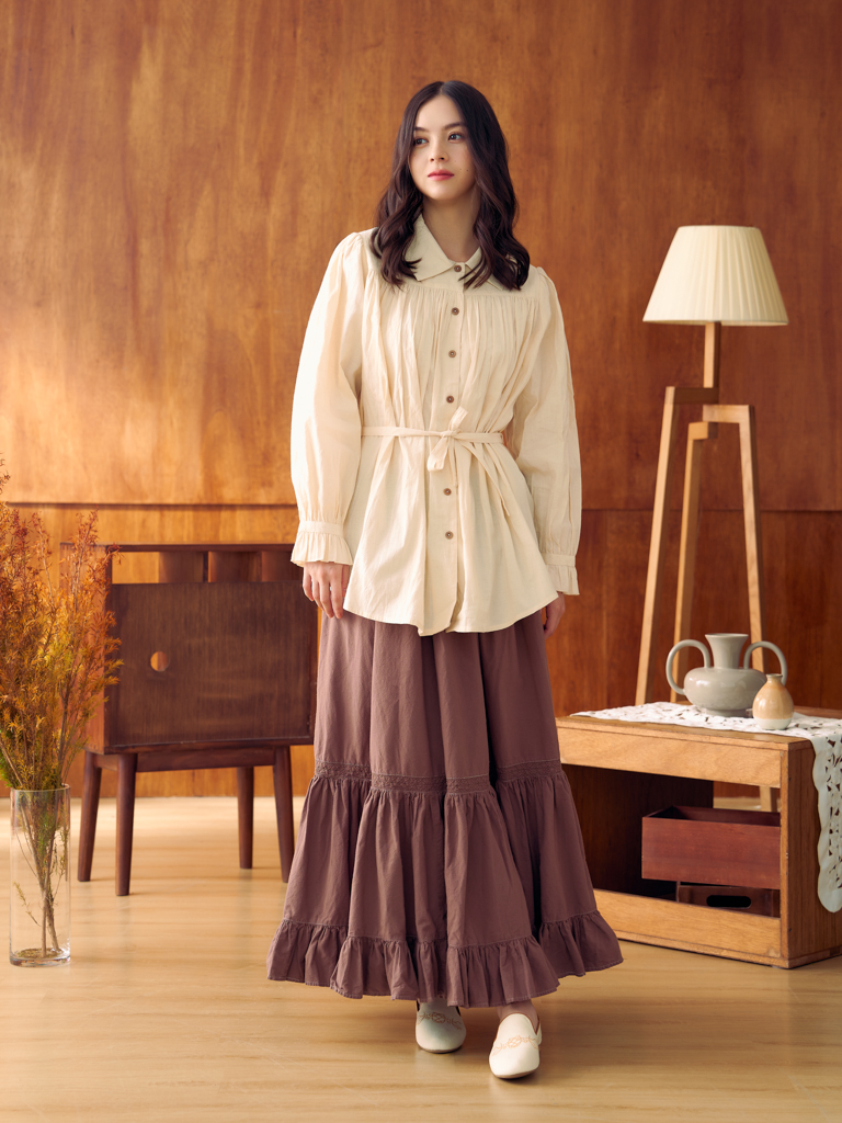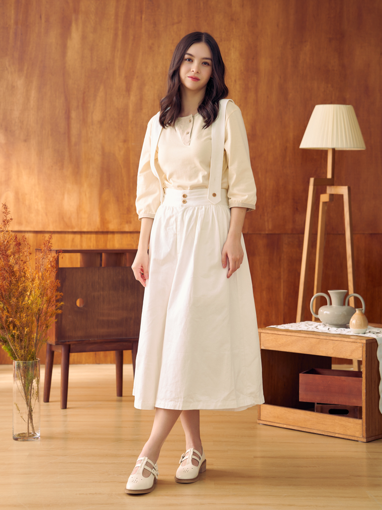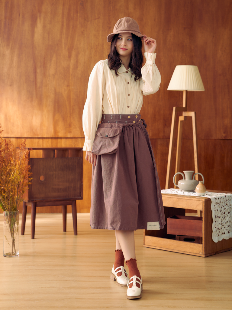 Giselle Button Skirt (Natural/Light Brown/Dark Brown/Navy/Grey)