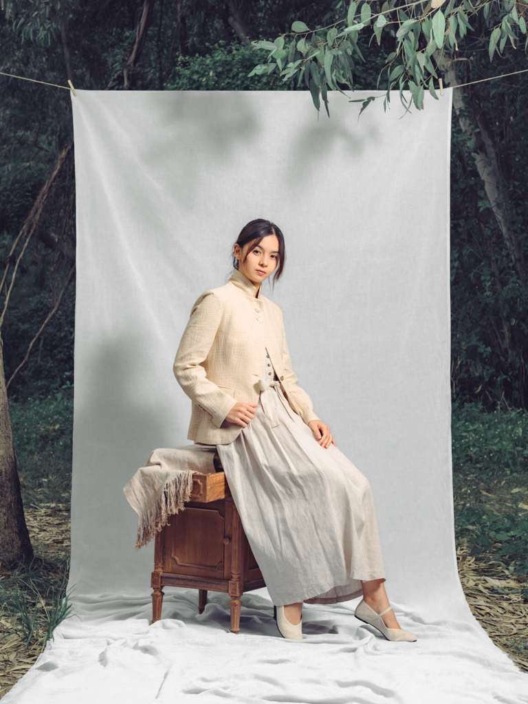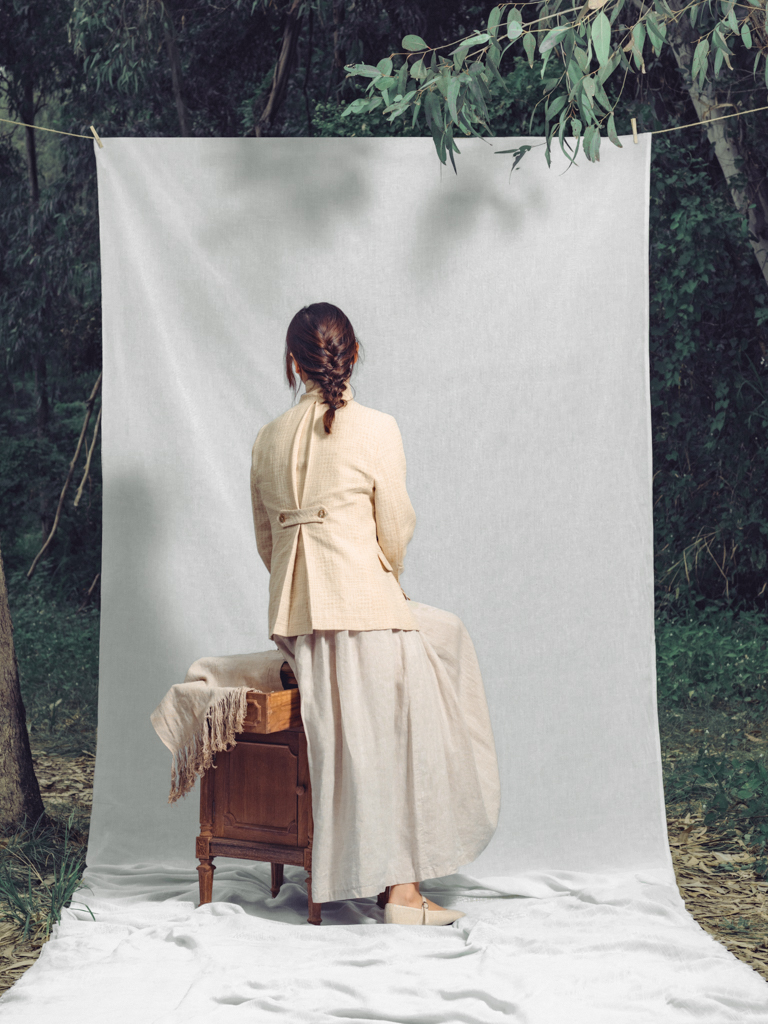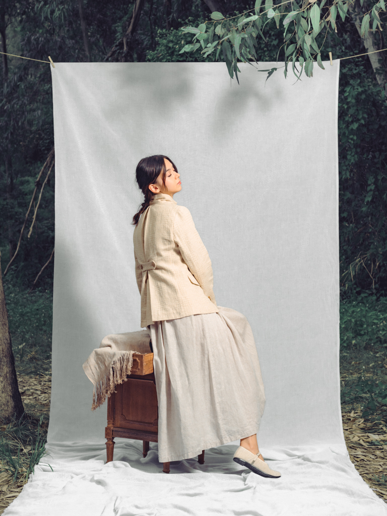 • 後背使用長衣破縫開背,有腰扣裝飾