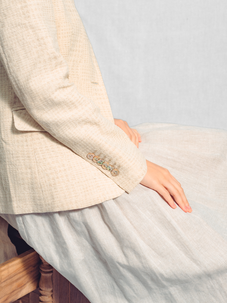 • 手袖用上西裝細節kissing buttons,六貼扣,皆為澳洲紅鮑魚扣