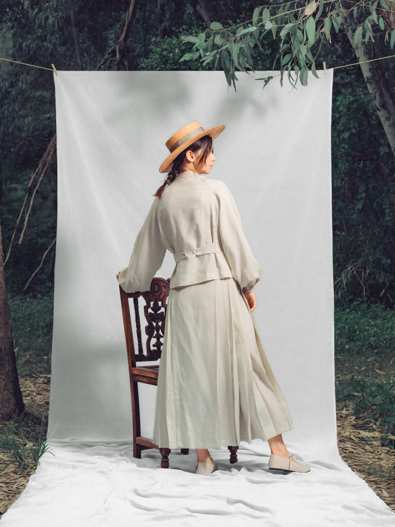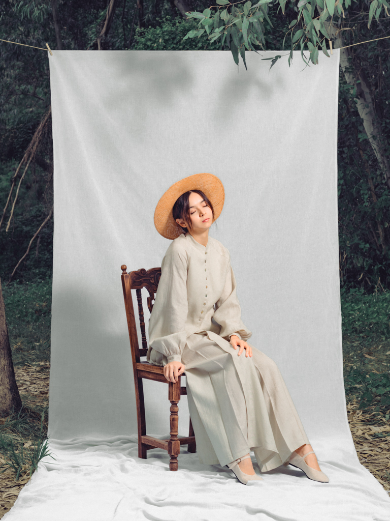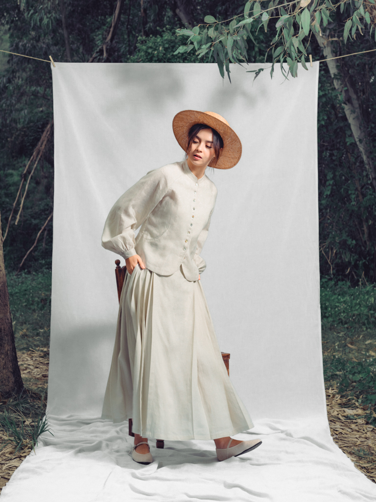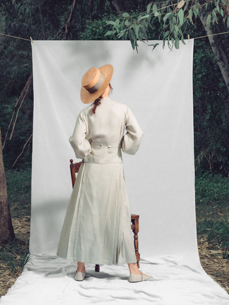 - 屬明制漢服馬面裙 ,以前後單片,左右重摺及五米大裙擺,呈現東方儀式感