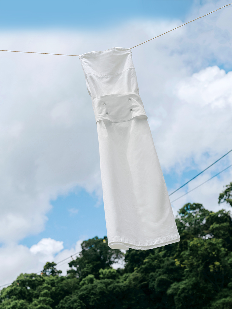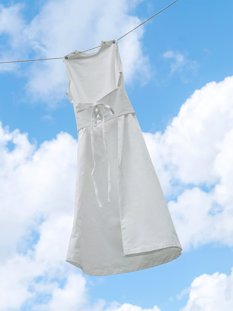 可作One Piece長裙,或翻下來,作高腰半截長裙。腰帶特別設計,令腰線更突出,身型更修長。